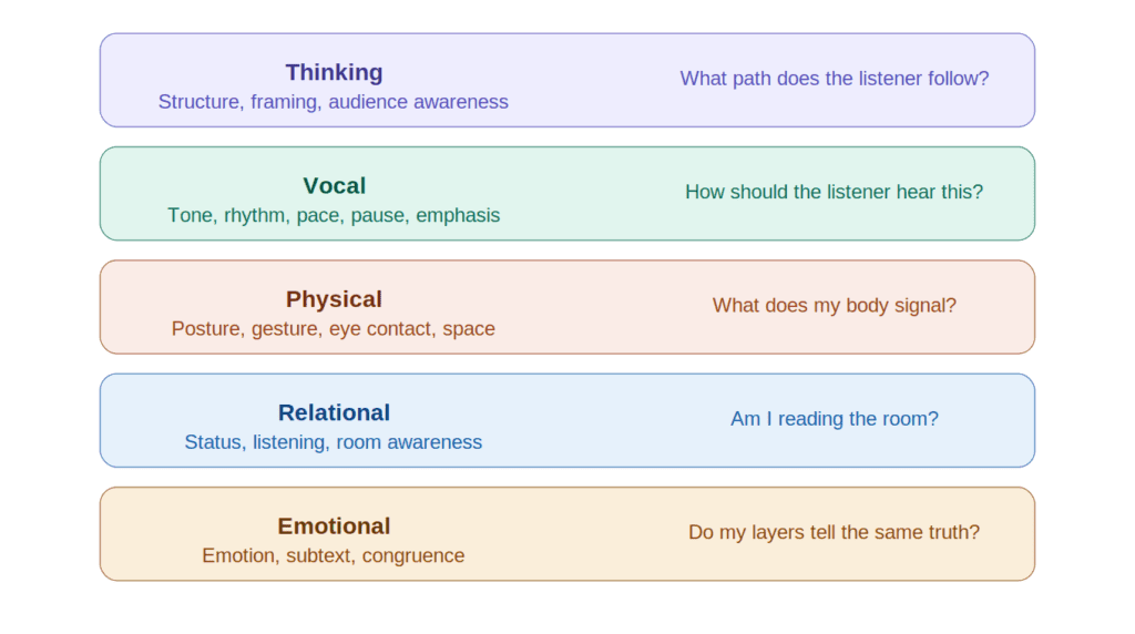 This is where strong speakers become more than articulate. They become legible – they use the invisible layers so you can understand what they mean, where they stand, and what they need from the room.